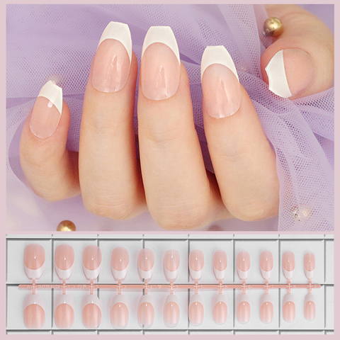 Hello Paris Classical French Nail Medium Natural Artificial Nails Square White French Style Smile Line Finfernails False Nails Aliexpress