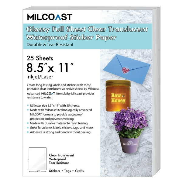 Milcoast Glossy Full Sheet 8 5 X 11 Adhesive Waterproof Photo Craft Paper Works With Inkjet Laser Printers For Stickers Labels Scrapbooks Bottle Labels Arts And Crafts 25 Sheets Walmart Com Walmart Com