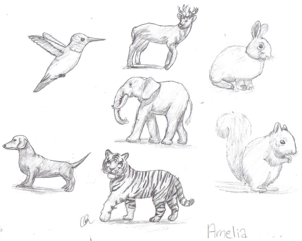 Pencil Realistic Drawing Of Animals Rectangle Circle