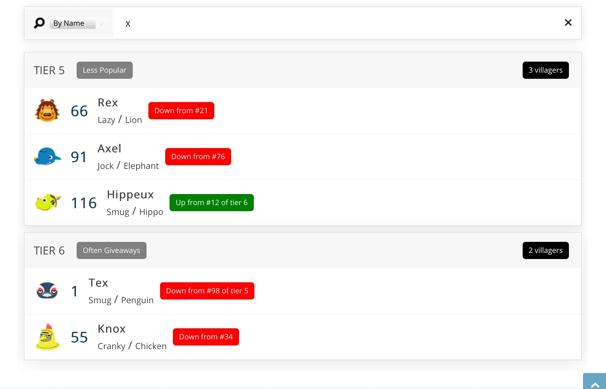 Tier List Animal Crossing New Horizons Villagers